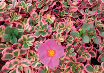 ピンクの花に負けないくらい、葉色が鮮やかな色になるのが特徴です。花よりも、葉っぱが主役といっても