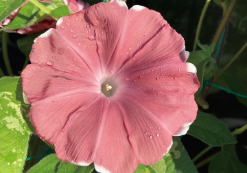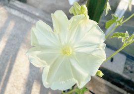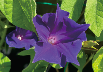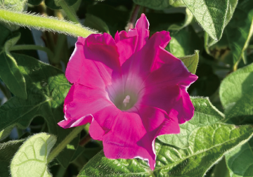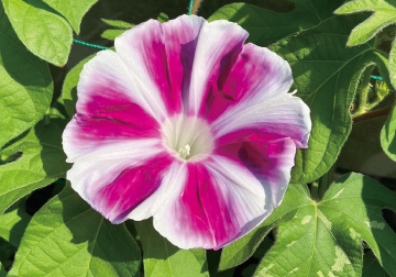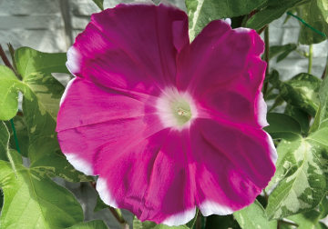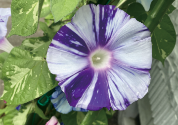 | 手まり | 通常の朝顔より比較的長く咲きます。白い縁取りが入り、色合いがとても綺麗です。 葉に斑が入るのが特徴です。 |