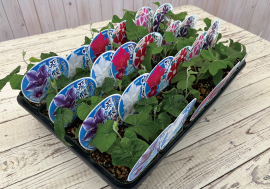 | かざぐるま | ご当地シリーズに比べると、花が少し小ぶりで遅咲きタイプです。かざぐるまの様に、 切れ込みが入るのが特徴です。環境により、一重咲きになる場合、色に濃淡が出る 場合がございます。 |